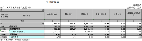 黄石市教育信息化发展中心2021年财政拨款收入总计1205.82万元,同比减少5.72%,黄石市教育信息化发展中心2021年财政拨款支出总计1205.82万元,同比减少5.72%。主要原因是项目减少,所以项目支出减少了。